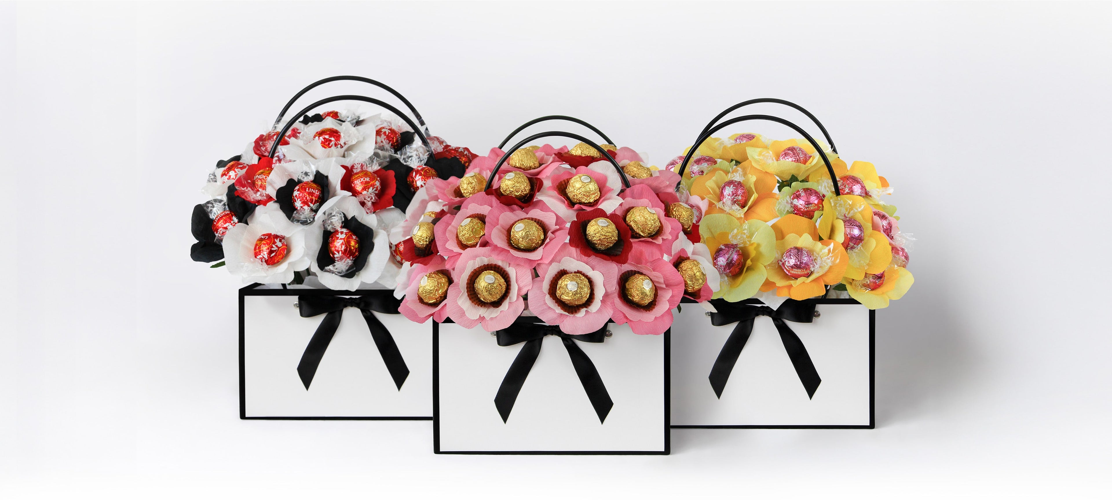 Sweetly named and colourfully styled, our handmade chocolate centred blooms are as delicious as they are beautiful.